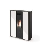 Der preiswerte, kanalisierbare, extra flache, belüftete Pelletofen Emily 9,5 kW der Marke EVA CALOR kann einen Raum von 200 m3 heizen. Dank des optionalen Bausatzes kann es platzsparend an der Wand aufgehängt werden. Mit seinen 9,5 kW abgegebener Leistung kann er mittelgroße Häuser heizen und mit dem optionalen Rohrleitungsset Wärme in einen angrenzenden Raum bringen.